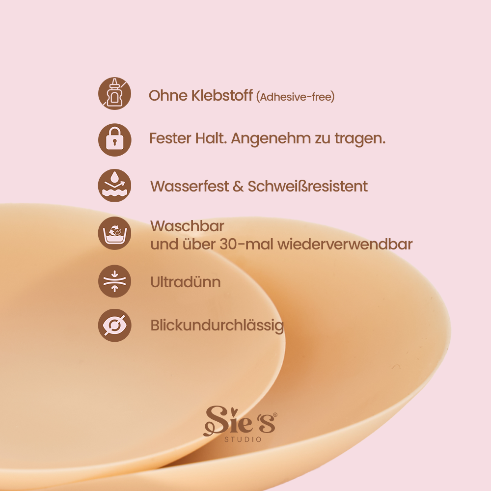 Découvre nos cache-tétons invisibles et doux pour la peau, 100 % silicone - sans aucune colle. Ces caches-mamelons autocollants (également appelés cache-mamelons) s'adaptent parfaitement à ta peau grâce à la chaleur du corps et offrent un maintien sûr - sans soutien-gorge.